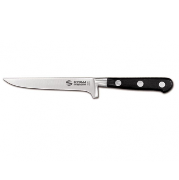 Chef utbeinings kniv 13 cm fra sanelli. Passer perfekt for til kjøtt, fjørfe, fisk og andre oppgaver som krever et manøvrerbart blad. Kniven har en stopper så man ikke skal mister grepet og kutte seg.