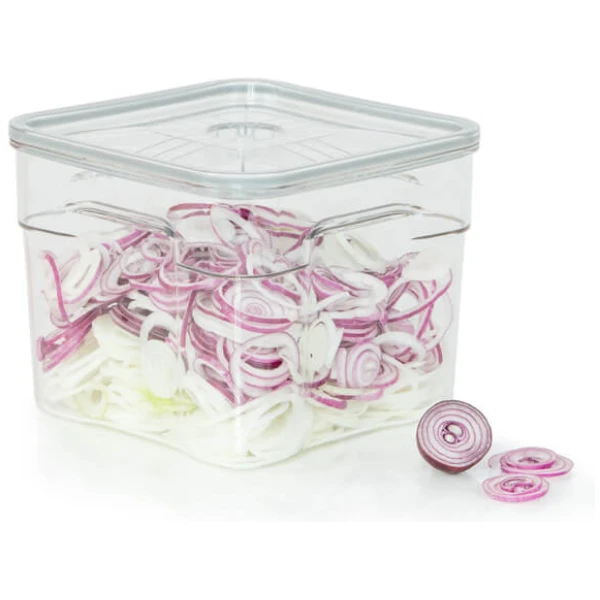 Gastro vakuumbeholder 6l er beregnet for profesjonell bruk hos pizzeriaer, restauranter, hoteller og cateringleverandører. Beholderen er egnet for lagring av frukt og grønnsaker, ferskt kjøtt og matrester; vakuum forlenger holdbarheten med 4x.