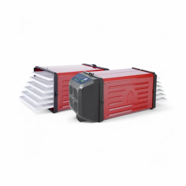 Kompakt, soliditet og det spesielle horisontale luftgjennomstrømnings-systemet som alltid sikrer en jevn og effektiv dehydrering / tørking.